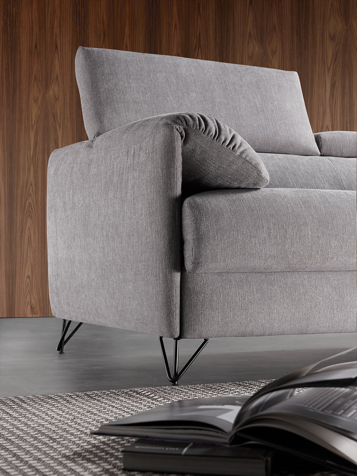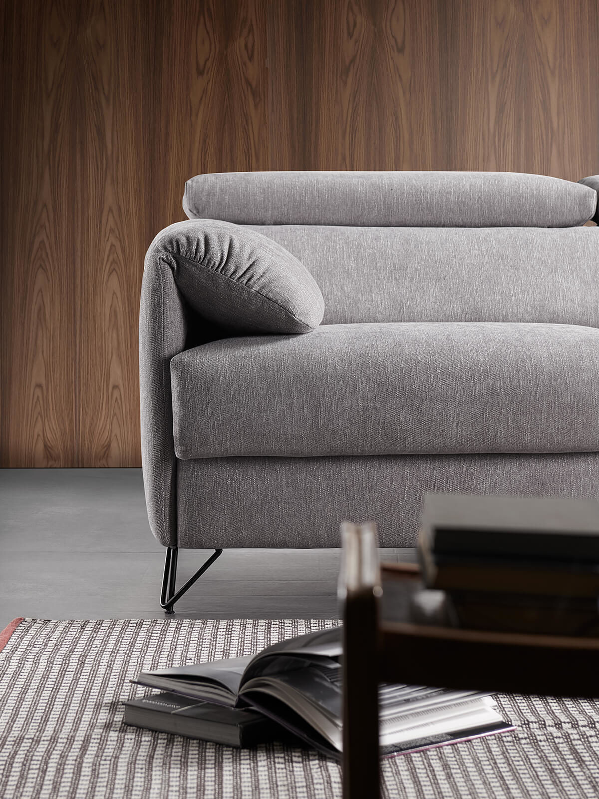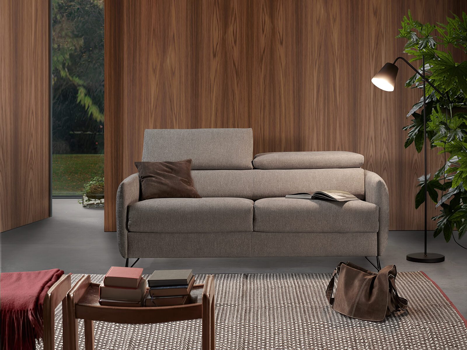 Victor est un Canapé-lit aux lignes recherchées et aux dimensions contenues avec un mécanisme repose-tête pour un espace confortable et fonctionnel.