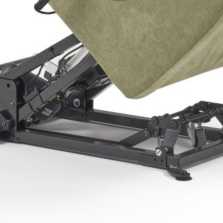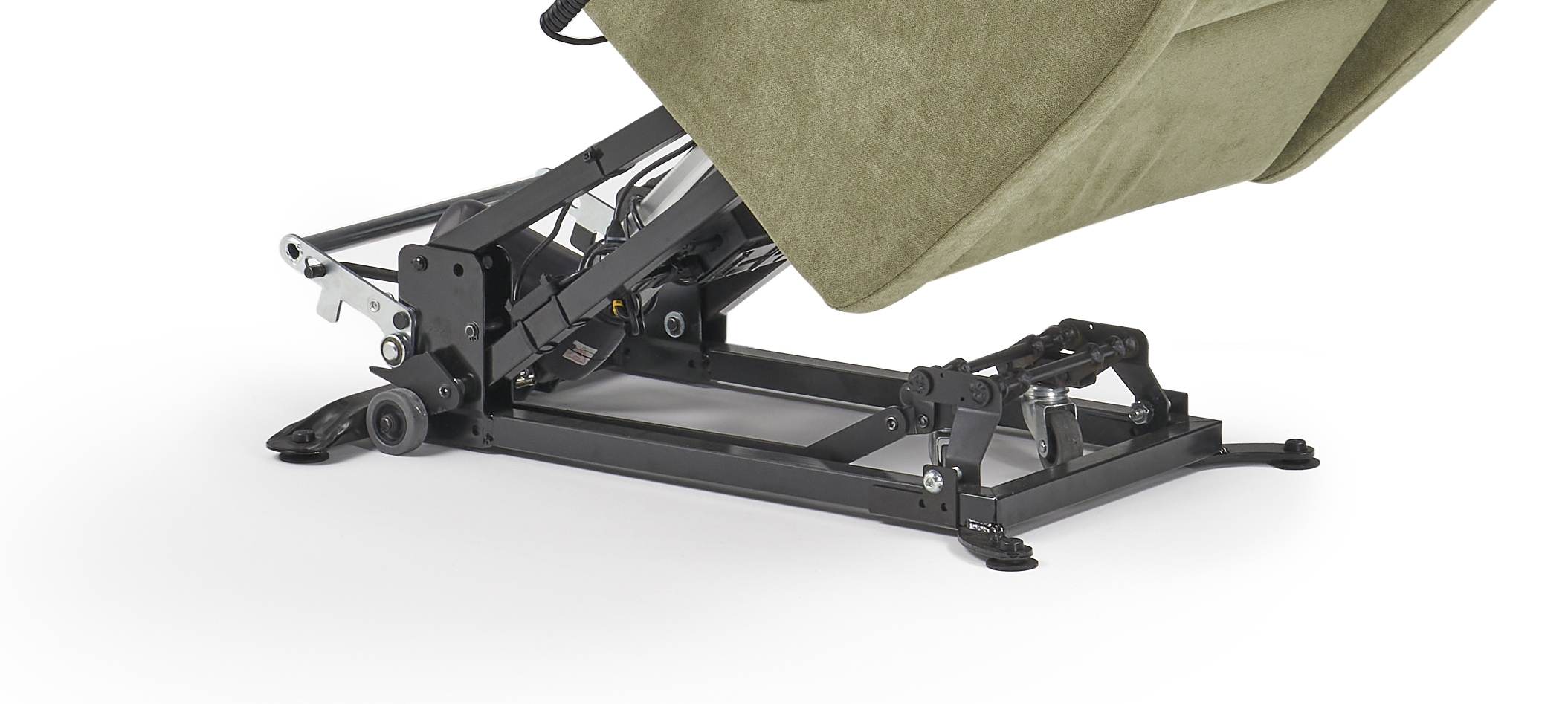 Il Kit Roller è un dispositivo posto al di sotto della seduta che, con un semplice movimento di un pedale posto sul retro della poltrona, aziona la fuoriuscita di 4 ruote gommate che permettono di muovere la poltrona senza alcuno sforzo, anche con una persona seduta sopra.