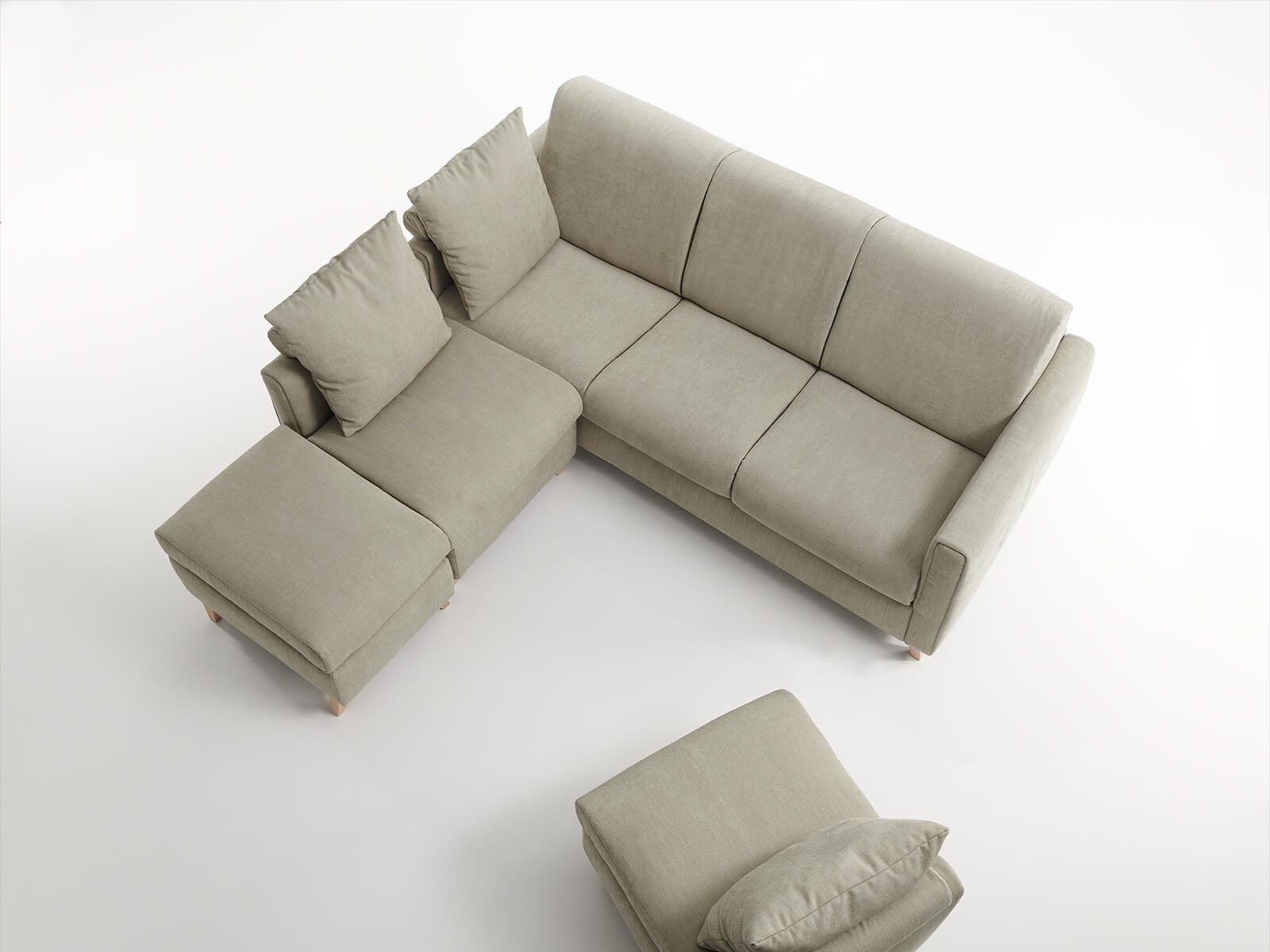 Tutti i nostri prodotti sono completamente personalizzabili in una vasta gamma di tessuti e colori. Perché il tuo salotto è unico e inimitabile.