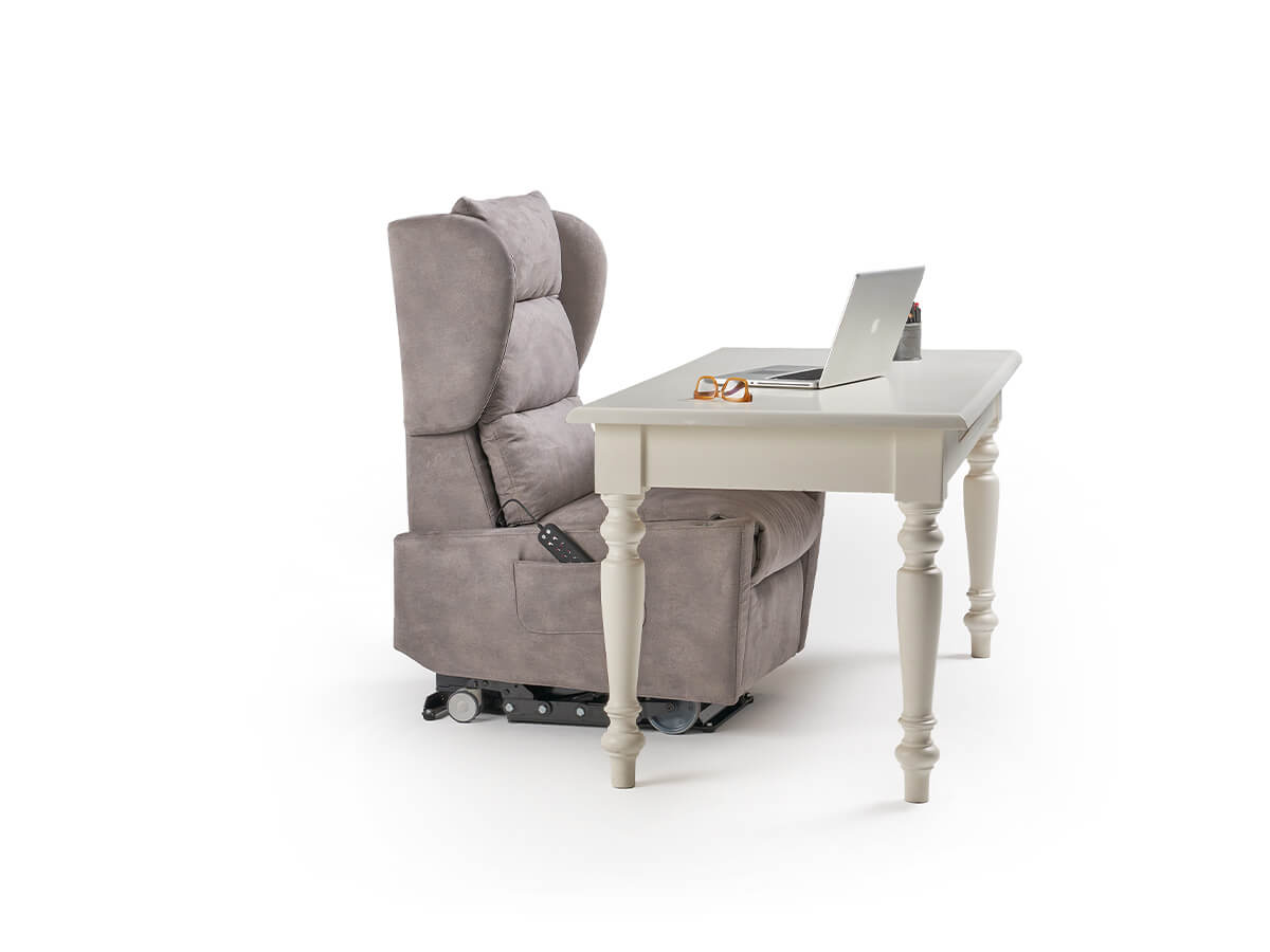 I braccioli estraibili di Kyra facilitano il passaggio sotto il tavolo, rendendo la poltrona perfetta per attività riabilitative o momenti di svago. Inoltre, il tavolino integrato è ideale per chi ha bisogno di un supporto extra durante le attività quotidiane. La funzionalità “orecchio a baionetta” consente a Kyra di attraversare facilmente le porte e di avvicinarsi al letto, offrendo una soluzione pratica per chi ha difficoltà motorie o è in fase di riabilitazione.