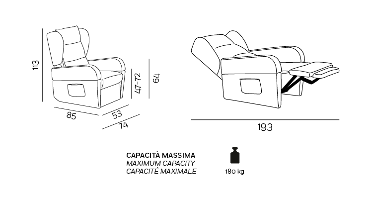 Con il suo sistema meccanico avanzato e un’ergonomia studiata nei minimi dettagli, Kyra permette una distesa completa, ideale per il sonno o il riposo in posizione supina.