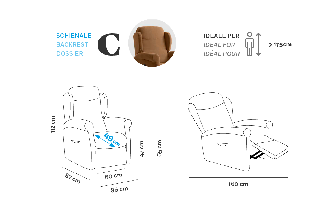 Con una portata massima di 190Kg, Multipla XL è stata pensata e realizzata tenendo conto delle caratteristiche di chi ha una taglia forte.