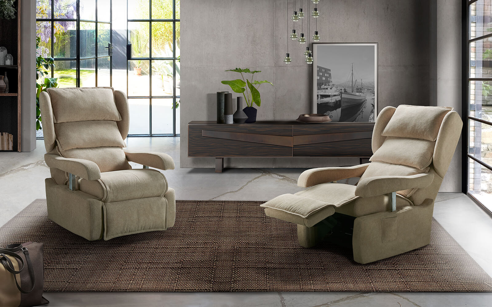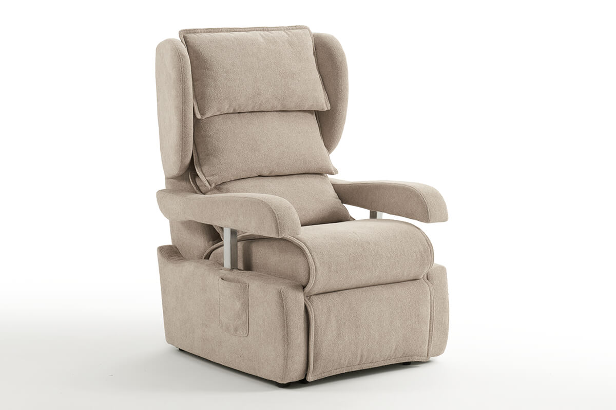 Olimpia è l’avanguardia di un comfort che si prende cura delle persone, grazie a un sistema meccanico progettato per garantire una distesa completa di straordinaria comodità e consentire, in posizione seduta, il passaggio sotto il tavolo grazie ai braccioli che si abbassano.