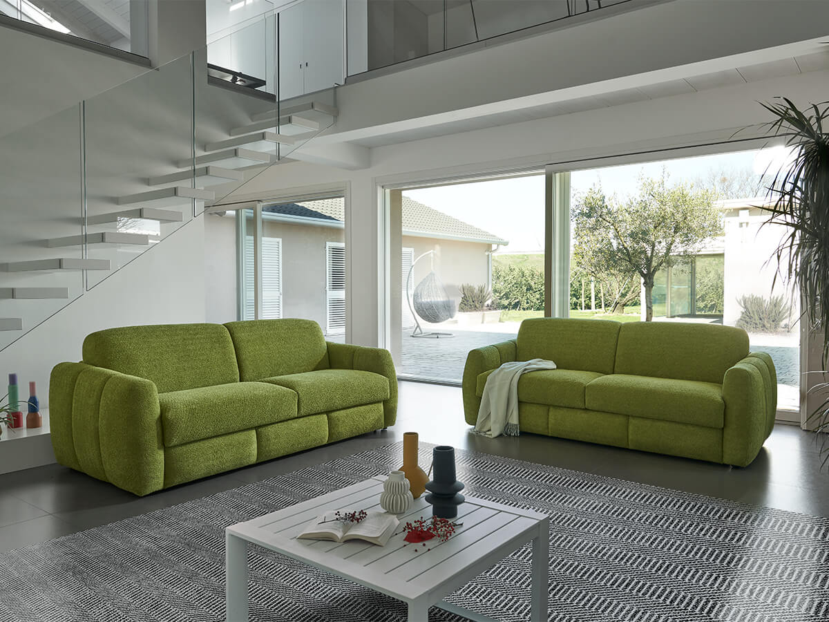 Tutti i nostri prodotti sono completamente personalizzabili in una vasta gamma di tessuti e colori. Perché il tuo salotto è unico e inimitabile.