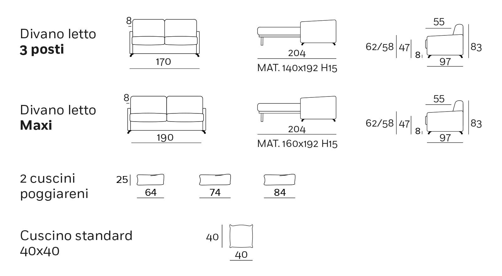Il materasso è un elemento fondamentale del divano letto. Ecco le opzioni disponibili per questo prodotto.