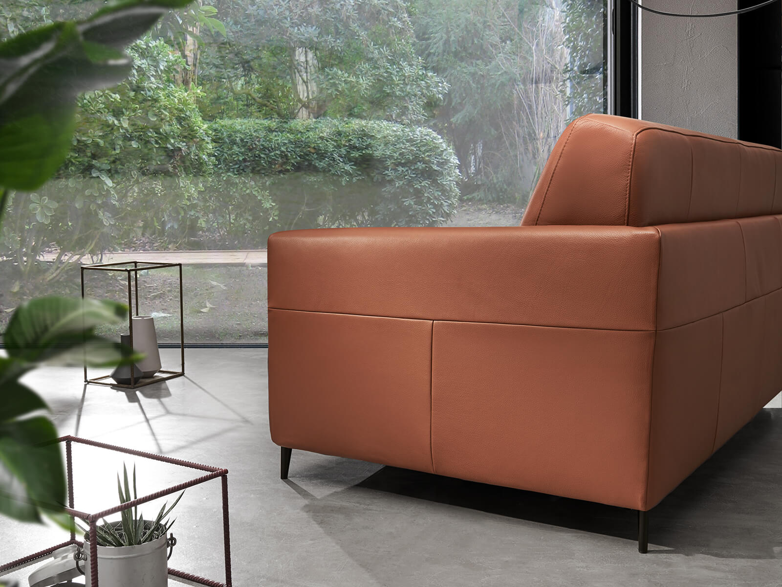 Teo è un divano compatto e pratico dalle linee essenziali. Può essere un comodo divano o un letto pronto in pochi minuti.