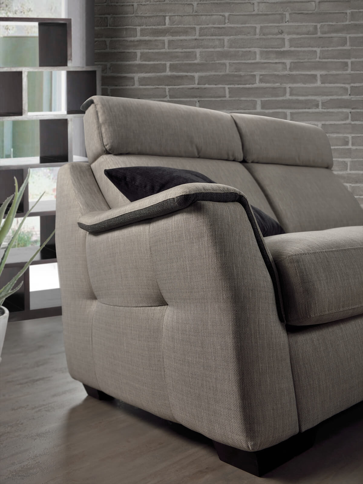 Lo schienale alto a densità differenziate consente un comfort perfetto, grazie anche all’operazione relax regolabile elettricamente.